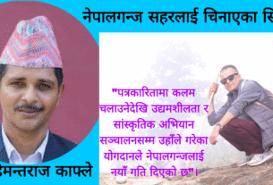 नेपालगन्ज – नागरिक समाज अनलाइनका कार्यकारी सम्पादक रामबहादुर ओली (रामु) लाई बिहीबार ‘नयनराज रावल स्मृति पुरस्कार तथा सम्मान’ प्रदान गरिएको छ। लागुऔषध दुरुपयोगविरुद्ध र सामाजिक पुनःस्थापनका पक्षमा कलम चलाएबापत उनलाई यो सम्मान दिइएको दमयन्ती फाउन्डेसनले जनाएको छ । दमयन्ती फाउन्डेसन नेपालद्वारा आयोजित नवौँ स्मृति दिवस समारोहमा रु. १०,००१ राशिको उक्त पुरस्कार र प्रमाणपत्र वलीलाई प्रदान […]