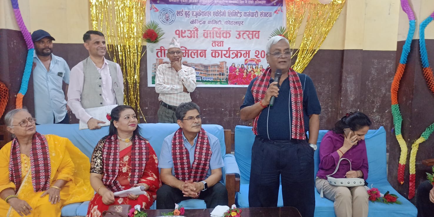 नेपालगन्ज : लर्ड बुद्ध एजुकेशनल एकेडेमी लि. कर्मचारी संगठन केन्द्रीय कमिटीको १९ औं वार्षिकोत्सब तथा तीज मिलन कार्यक्रम भब्य रुपमा सम्पन्न भएको छ । आज नेपालगन्ज मेडिकल कलेज शिक्षण अस्पताल कोहलपुरमा भएको उक्त कार्यक्रममा कर्मचारी संगठनका २०७९ असार ३२ पछि ६० वर्ष उमेर पुगेर अवकाश भएका कर्मचारीहरुलाई सम्मानित गरिएको हो । लर्ड बुद्ध एजुकेशनल एकेडेमी […]