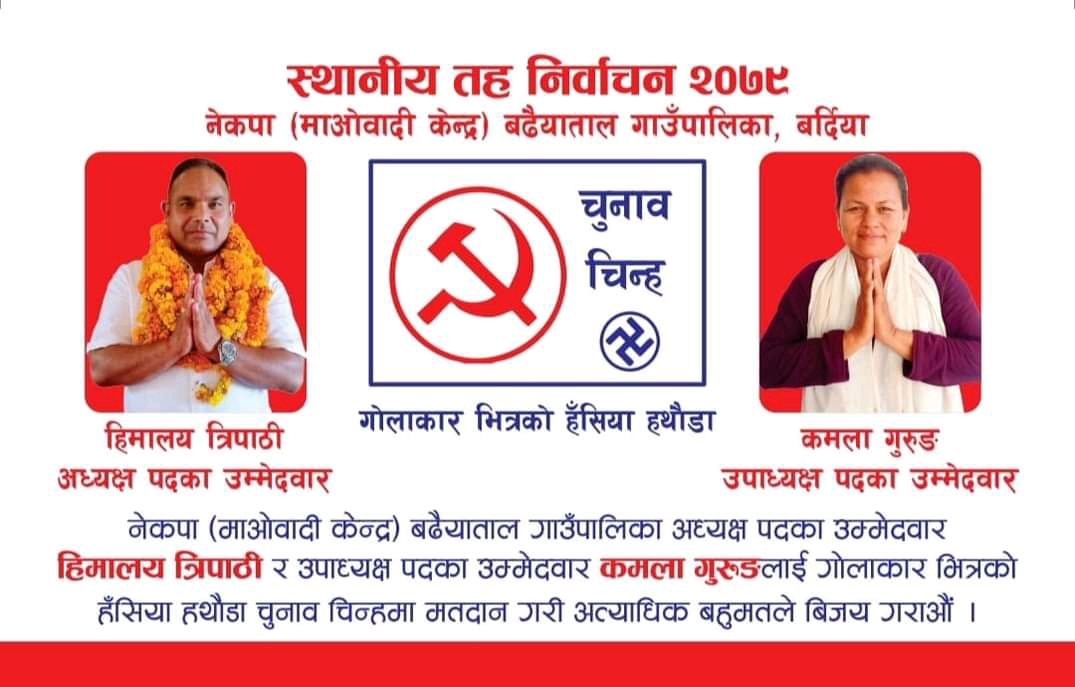 कोहलपुर नगरपालिका १ कौशिल्यानगर वाईसीएल नेपाल ईन्चार्ज राजु शाही माथी नेकपा एमाले निकट राष्ट्रिय युवा संघका सुदिप थापाले धारिलो हतियार खुकुरी प्रहार गर्दा घाईते शाहीलाई नेपालगन्ज मेडिकल कलेज शिक्षण अस्पताल कोहलपुरमा उपचार भई रहेको छ । उक्त खुकुरी प्रहारमा सरिक भएका दुईजनालाई ईलाका प्रहरी कार्यालय कोहलपुरले पक्राउ गरि थुनामा लिएको ईलाका प्रहरी कार्यालय कोहलपुरले जानकारी […]
