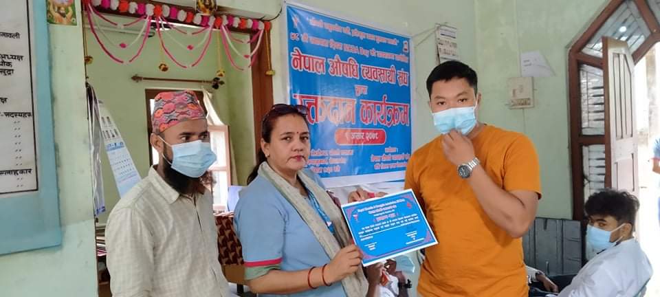 नेपालगन्ज : नेपाल औषधि व्यवसायी संघ बाँकेले आफ्नो ४८ औं स्थापना दिवसको उपलक्ष्यमा गरिएको रक्तदान कार्यक्रममा ४८ जनाले रक्तदान गरेका छन् ।