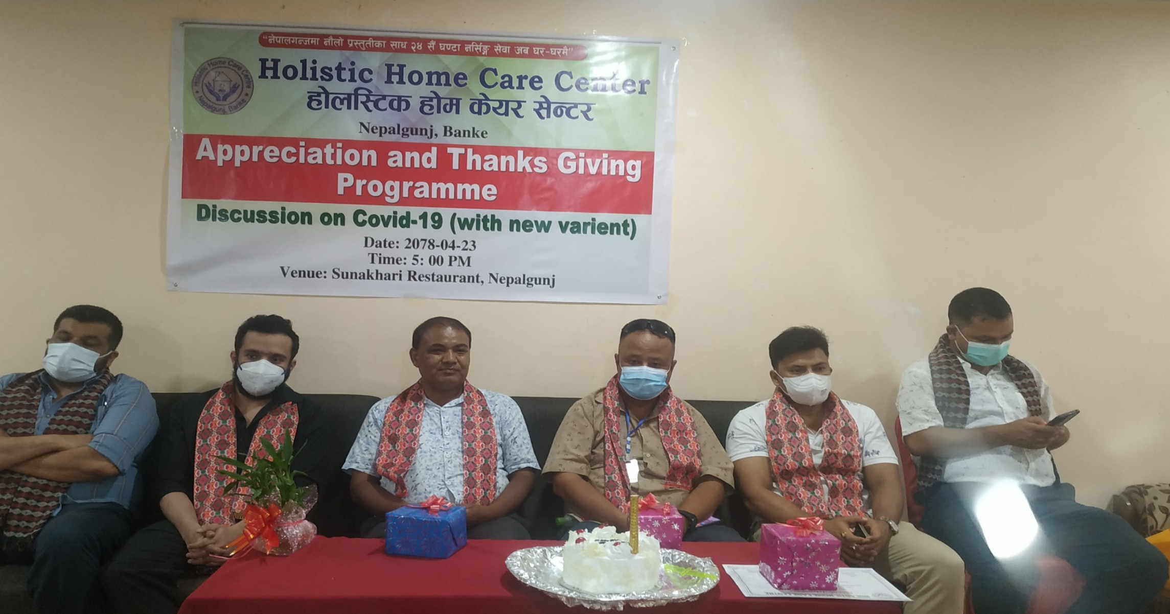 उक्त सम्मान तथा कोरोनाको नयाँ भेरीएण्टको बारेमा छलफल कार्यक्रममा डा- अासिम किदुवाईले होलस्टिक होम केयरले नेपालगन्जमा कोरोनाको भयावह अवस्थामा समेत राम्रो काम गरेको र उक्त कार्य निरन्तरता दिनुपर्नेमा जोड दिनुभएको थियोे ।
