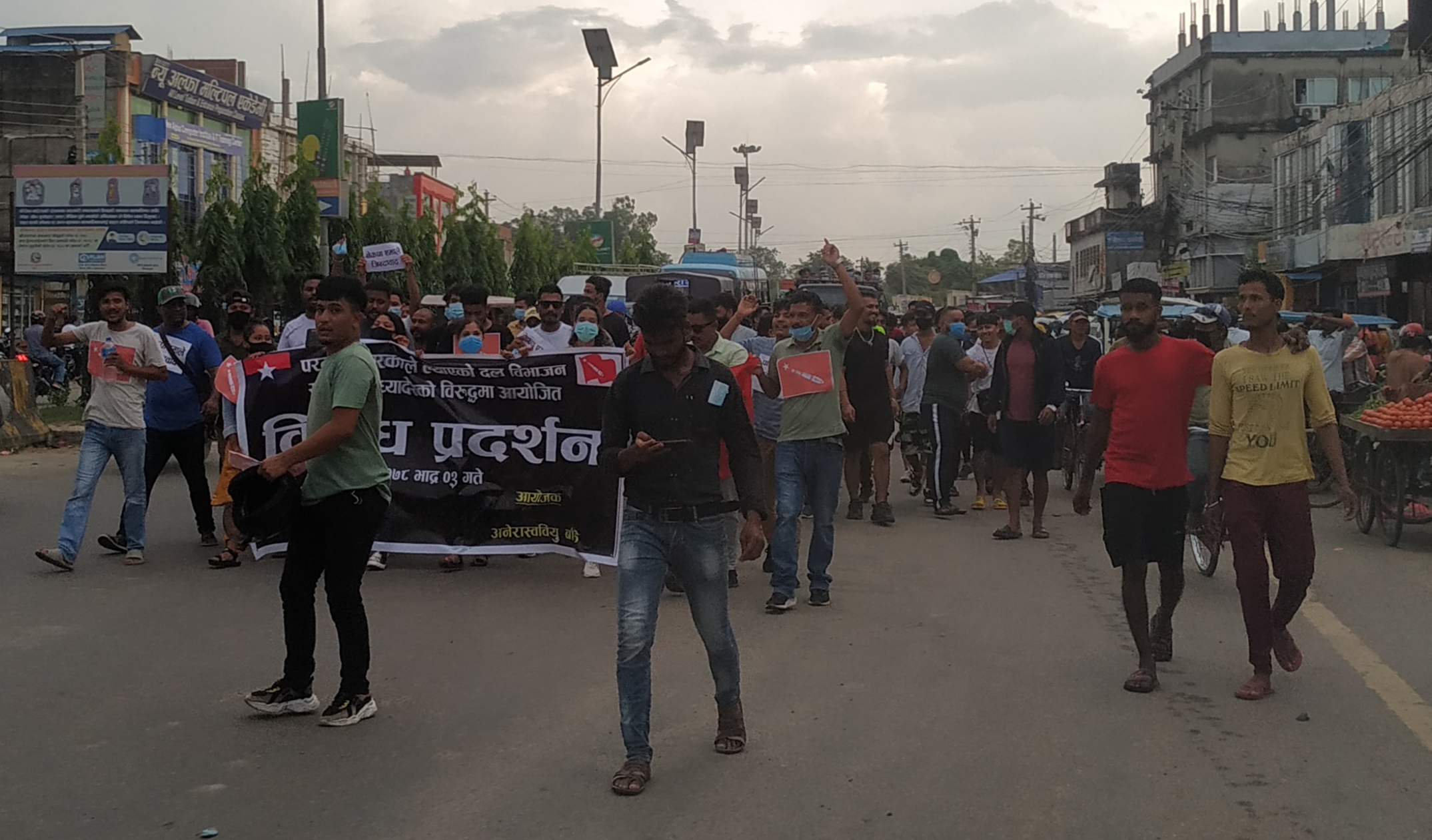 साँझ ५:०० बजेको समयमा नेकपा एमाले पार्टी कार्यालयबाट निकालिएको जुलुस बि-पी- चोकमा गएर कोण सभामा परिणत भएको थियोे । विरोध जुलुसमा सरकार विरोधी चर्का नाराबाजी गरिएको थियो । कोण सभामा अनेरास्ववियु बाँकेका सचिब प्रकाश बि-क- लगायतले सम्बोधन गरेका थिए ।
