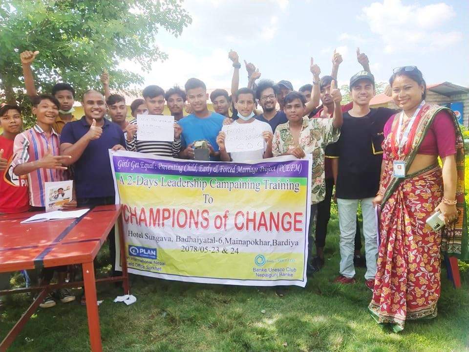 क्लबद्धारा प्लान इन्टरनेसनल नेपालको सहयोगमा सञ्चालन गरिएको बालविवाह, कम उमेरमा गर्ने विवाह र जबरजस्ती गर्ने विवाह रोकथाम परियोजना अन्तर्गत सो तालिम सञ्चालन गरिएको हो ।