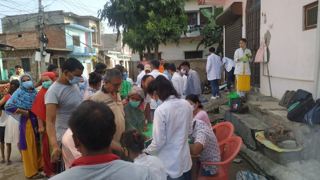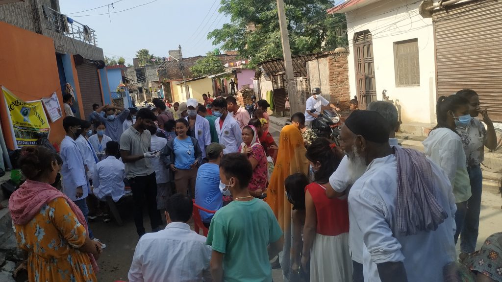 नेपालगन्ज : कोरोना महामारीको समयमा टोलटोलमा स्वास्थ्य पहुँच पुगोस् भन्ने हेतुले आज बाँकेको नेपालगन्ज उपमहानगरपालिका वडा नं १२ कोरियनपुरमा निशुल्क स्वास्थ्य शिविर गरिएको छ ।