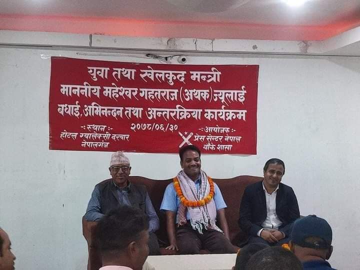 उक्त भेटघाट तथा छलफल कार्यक्रममा मन्त्री गहतराजलाई सम्मान तथा अभिनन्दन गरिएको थियोे ।