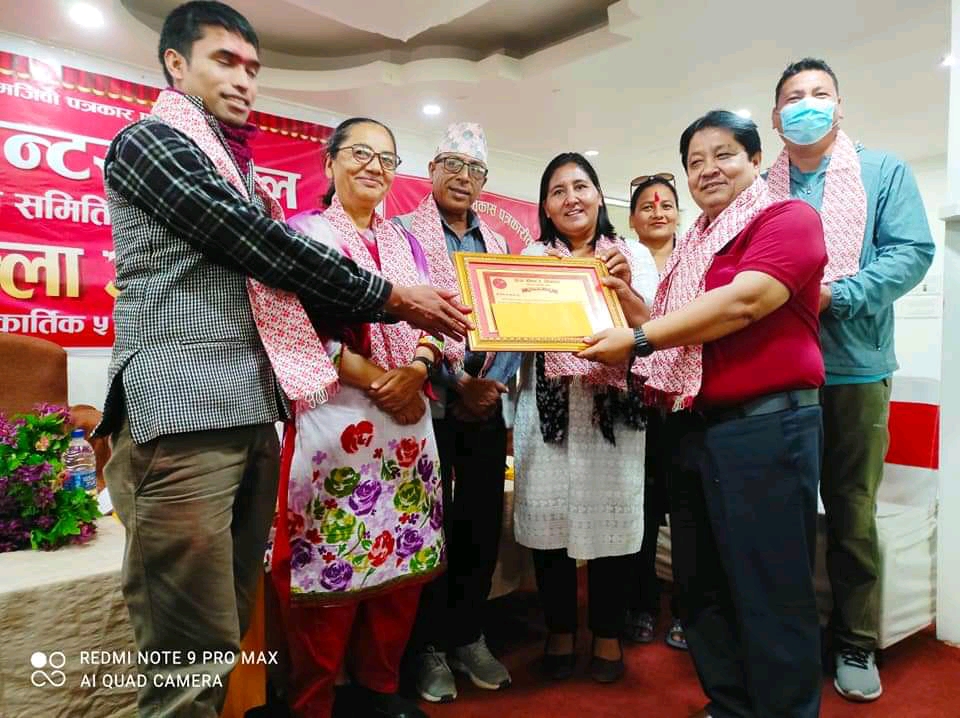 कार्यक्रमका प्रमुख अतिथि तथा प्रेस सेन्टर लुम्बिनी प्रदेश संयोजक मानसिह विश्वकर्मा , नेकपा माओवादी केन्द्र बाँके इन्चार्ज पुर्णा कुमारी सुवेदीले, बाँके जिल्ला संयोजक तथा प्रदेश सांसद आइपी खरेल , प्रदेश सांसद कृष्णा केसी नमुना, प्रेस चौतारी बाँकेका अध्यक्ष हेमन्त बि-क-, पत्रकार महासंघ लुम्बिनी प्रदेश उपाध्यक्ष शुक्र ऋषि चौलागाईं, जेटियुसिसीका अध्यक्ष बसन्त मल्लले संयुक्त रुपमा सम्मान पत्र तथा नगद रु ५०००/ सहित सम्मान गरेका थिए ।