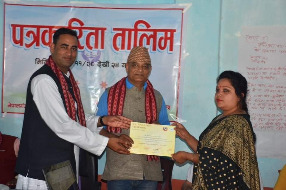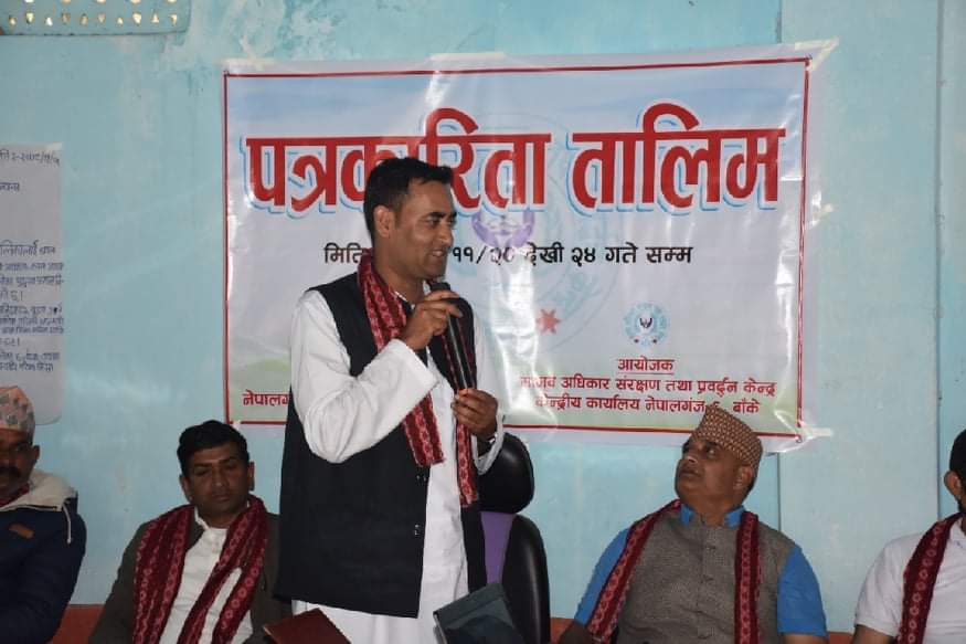 नेपालगन्ज : मानव अधिकार संरक्षण तथा प्रवर्द्धन केन्द्र (हुरीपप) को आयोजना र नेपालगञ्ज उपमहानगरपालिका वडा नं ६ को सहयोगमा सुरु भएको पाँच दिने पत्रकारिता तालिम मंगलबार सम्पन्न भएको छ ।