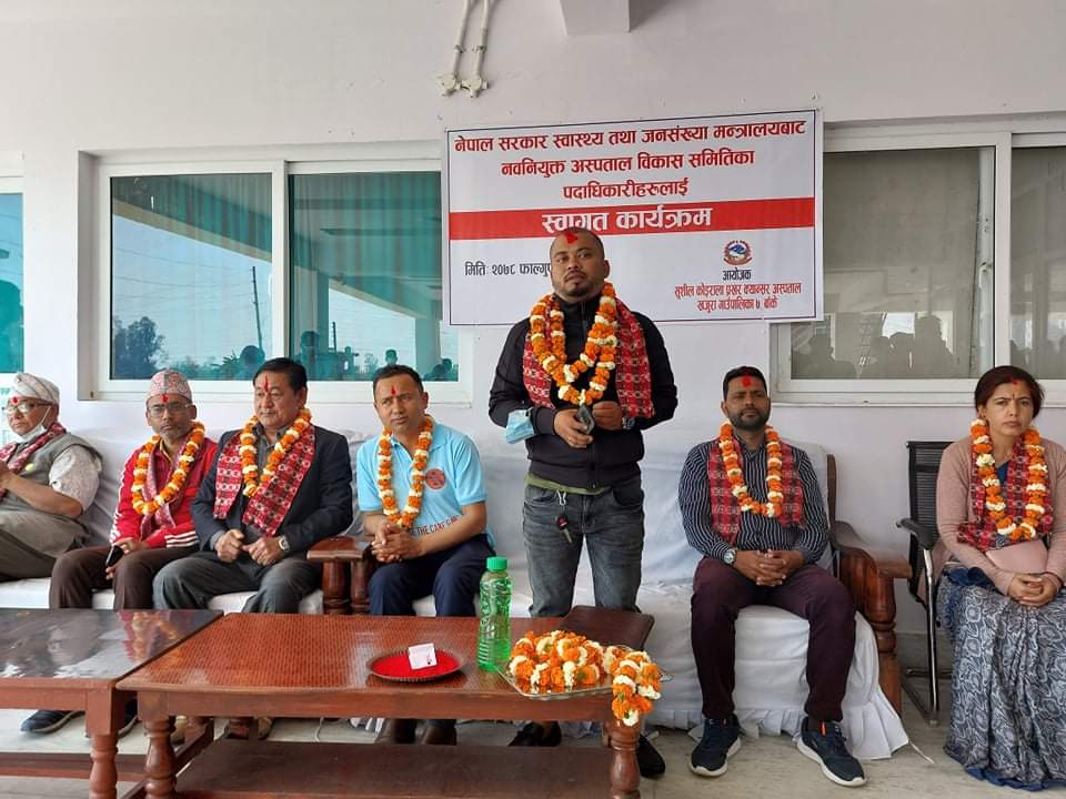त्यस्तै नवनियुक्त अस्पताल ब्यवस्थापन समितिको पदाधिकारीहरुले पहिलो बैठक कार्यालय सहयोगीसंग गर्दै अस्पतालमा भएका सेवा सुबिधाको बारेमा छलफल गरेका थिए ।