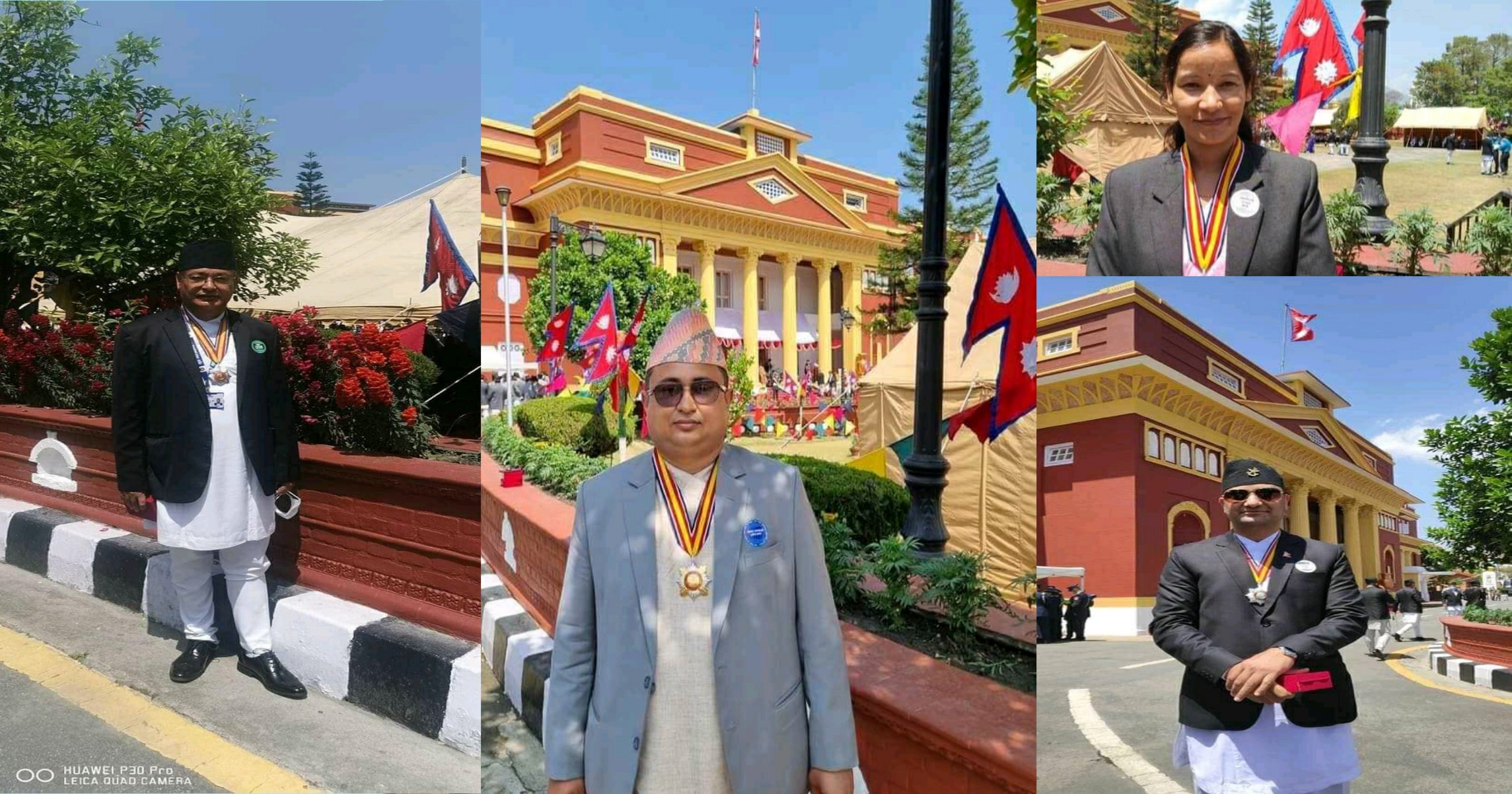 आज राष्ट्रपति कार्यालयमा आयोजित विशेष समारोहमा राष्ट्रपति विद्यादेवी भण्डारीले बाँकेका प्रमुख जिल्ला अधिकारी सिडियो सुर्य बहादुर खत्री, भेरी अस्पताल नेपालगन्जका प्रमुख फिजिसियन डा- राजन पाण्डे , जनस्वास्थ्य कार्यालय बाँकेका प्रमुख धिरज जङ्ग शाह, भेरी अस्पताल नेपालगन्जमा प्रयोगशाला विभागका प्रमुख प्रसन्न मिश्रालाई सु प्रवल जनसेवा पदकबाट र भेरी अस्पताल नेपालगन्जमा कार्यरत पूर्व कर्मचारी स्टाफ नर्स सुनितालाई प्रसिद्ध प्रबल जनसेवाश्री मन्चम श्रेणी पदकबाट विभुषित गर्नु भएको हो ।