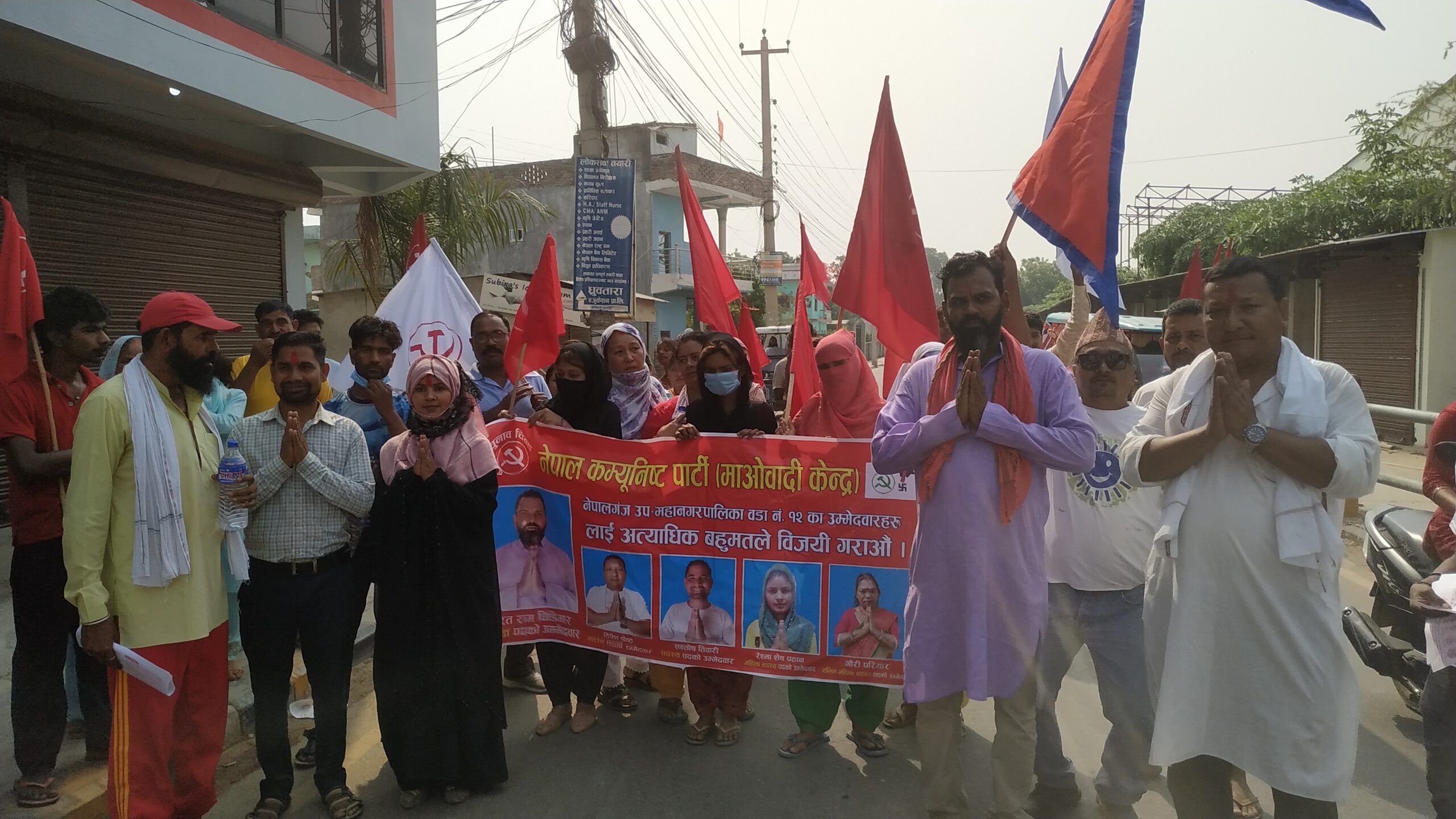 नेपालगन्ज : आसन्न स्थानीय निर्वाचनका लागि नेपाल कम्युनिस्ट पार्टी माओवादी केन्द्र नेपालगन्ज उपमहानगरपालिका वडा नं १२ का वडा अध्यक्ष तिरथराम चिडिमारको नेतृत्वमा उम्मेदवारहरु आफ्नो चुनावी प्रचारप्रसारमा सक्रिय रुपमा लागेका छन् ।