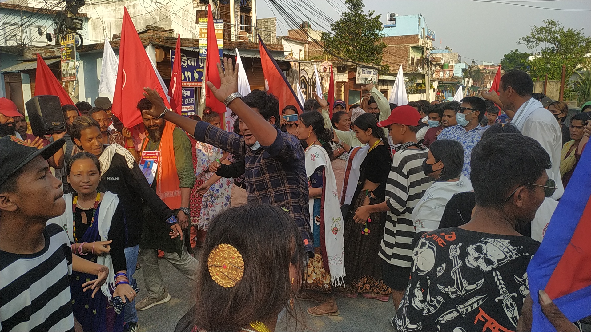 नेपालगन्ज : आसन्न स्थानीय तहको निर्वाचनमा नेपालगन्ज उपमहानगरपालिका वडा नं १२ बाट नेकपा माओवादी केन्द्रबाट वडा अध्यक्षमा उठेका अल्पसंख्यक जातीका तिरथराम चिडिमारलाई जनताको माया,हौसला र उनीहरुको टीमलाई जिताउने प्रतिबद्धता व्यक्त गर्दै स्थानीयहरुको जनसागर उर्लिएको छ ।