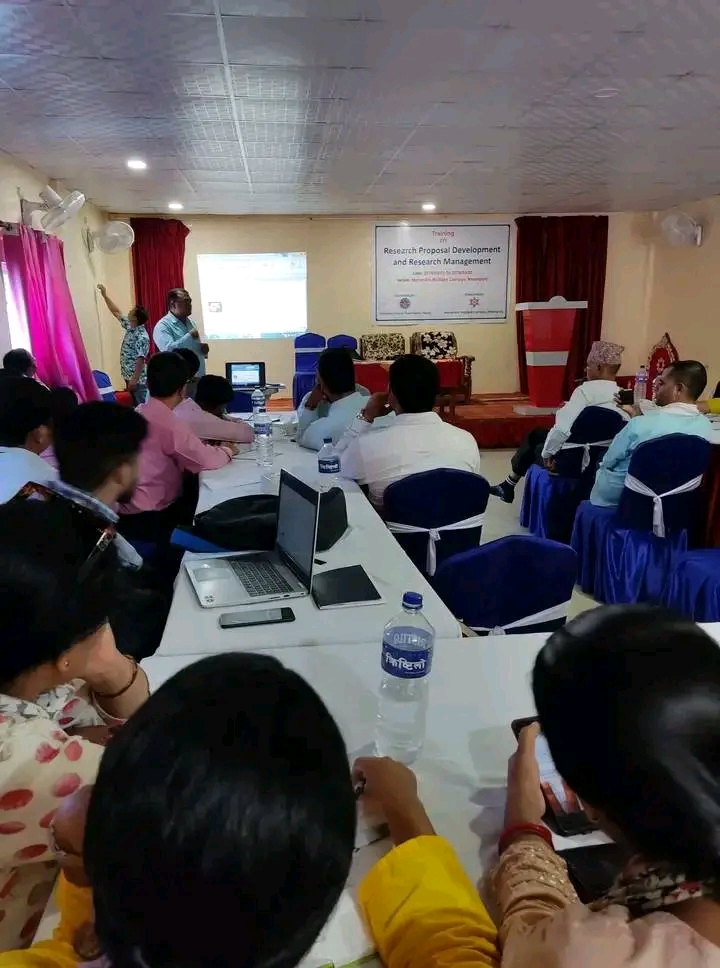 नेपालगन्ज : विश्व विद्यालय अनुदान आयोगको आर्थिक सहयोगमा महेन्द्र बहुमुखी क्याम्पस नेपालगन्जको आयोजनामा प्रस्तावना लेखन तथा अनुसन्धान व्यवस्थापन तालिमको आज सम्पन्न भएको छ ।