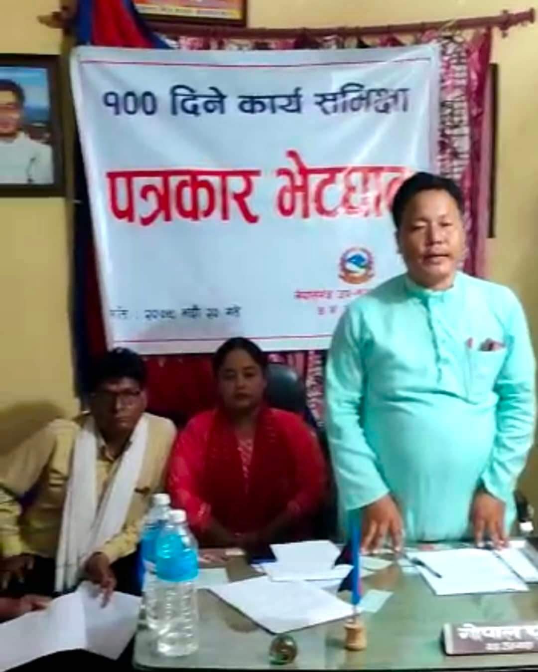 सोमबार कार्यालयमा पत्रकार सम्मेलन गर्दै वडाध्यक्ष गोपाल पुनले एक सय दिनको अवधिमा १६ वटा महत्त्वपूर्ण काम भएको सार्वजनिक गर्नुभयो । सामुदायिक विद्यालय कन्या मा-वि र अनाथालय गौशिया माविमा विद्यार्थी संख्ख्या बढाउन तथा उनीहरुलाई टिकाउन गरेको सहयोग, स्वास्थ्यतर्फ, सरसफाई तथा विविधतर्फ विभिन्न काम गरेको वडाध्यक्ष पुनले बताउनुभयो ।