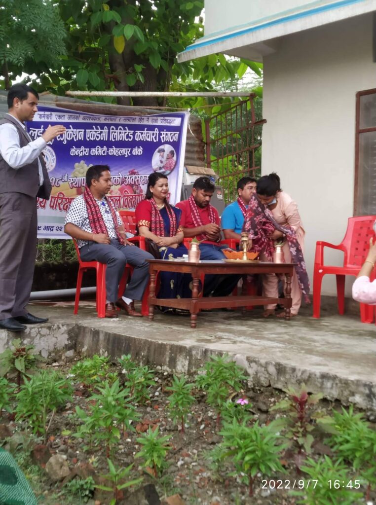लर्ड बुद्ध एजुकेशनल एकेडेमी लि- कर्मचारी संगठन वि- स- २०६१ सालमा स्थापना गरिएको थियोे । उक्त संस्थामा रहेका तिनवटा युनियनहरु मध्ये धेरै सदस्यहरु भएको र पुरानो संगठन भएको संगठनकी सभापति रत्ना गिरीले बताउनुभयो ।