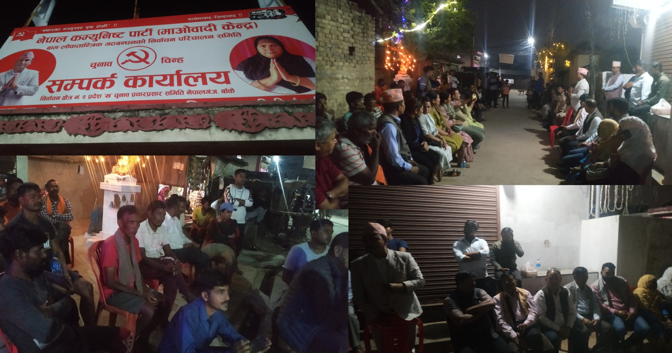 नेपालगन्ज – आगामी मंसिर ४ गते हुन गइरहेको प्रतिनिधि सभा सदस्य तथा प्रदेश सभा सदस्यको निर्वाचनका लागि बाँके निर्वाचन क्षेत्र २ अन्तर्गतको प्रदेश २ ख को माओवादी केन्द्रको निर्वाचन परिचालन समिति यतिखेर जोडतोडका साथ निर्वाचन अभियानमा दौडिएको अवस्थामा आज नेपालगन्ज उपमहानगरपालिका वडा नं १२ मा सम्पर्क कार्यालय उद्घाटन गरिएको छ ।