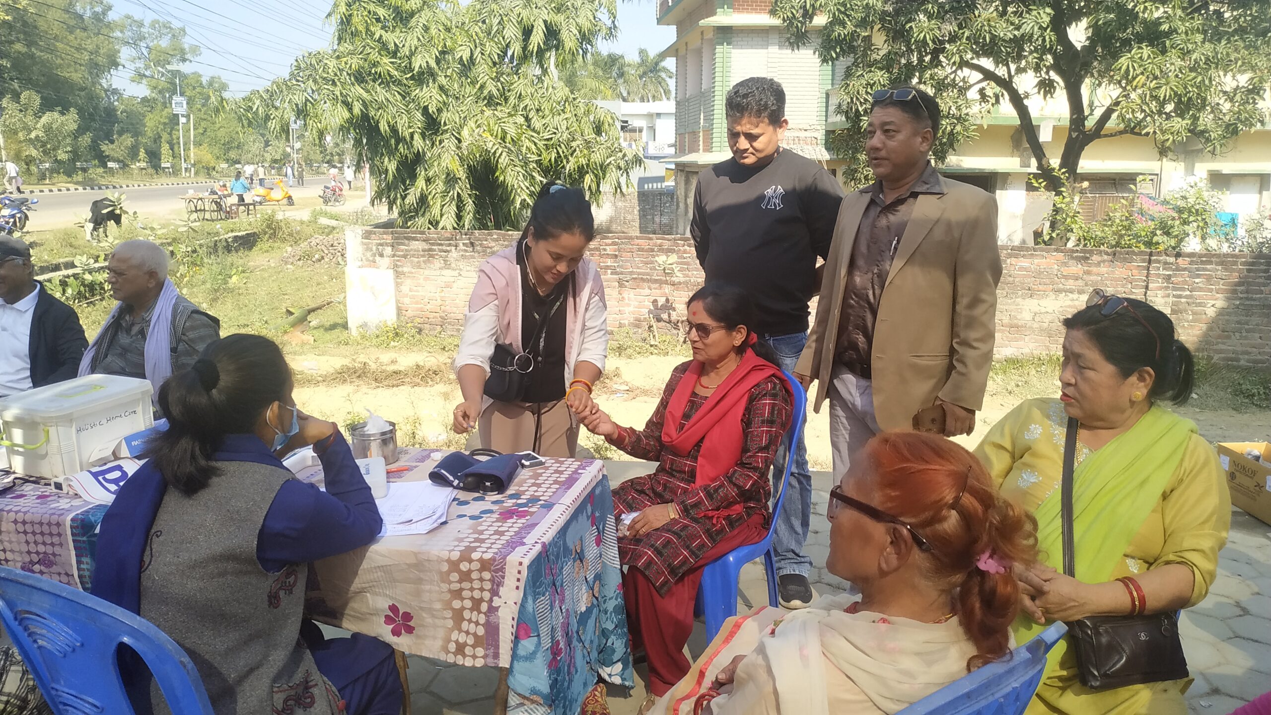 नेपालगन्ज : बाँके क्षेत्र नं २ ख को नेपालगन्ज उपमहानगरपालिका वडा नं १० वन विभागमा रहेको मतदान केन्द्रमा मत खसाल्न आउने मतदाताहरुलाई निशुल्क स्वास्थ्य चेकजाँचको व्यवस्था गरिएको थियो ।