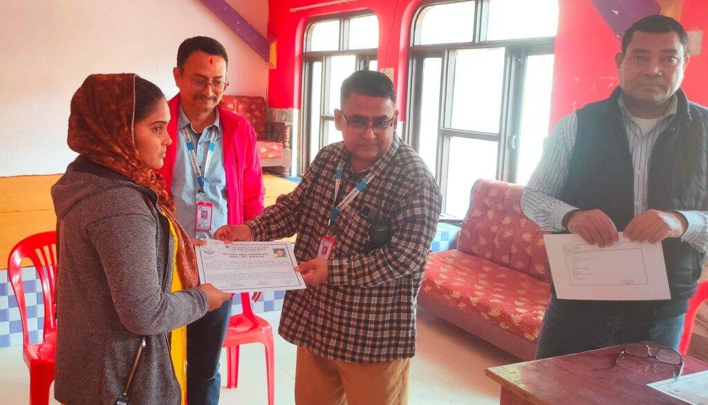 सिईटीभिटि अन्तर्गत सिलाई कटाई तालिम सम्पन्न भैसकेपछि तालिमका सफल सहभागिहरुलाई एक कार्यक्रमका विच प्रमाणपत्र वितरण गरिएको बाँके युनेस्को क्लबका प्रमुख संरक्षक प्रवेज अलि सिद्दिकीले बताउनुभयो ।