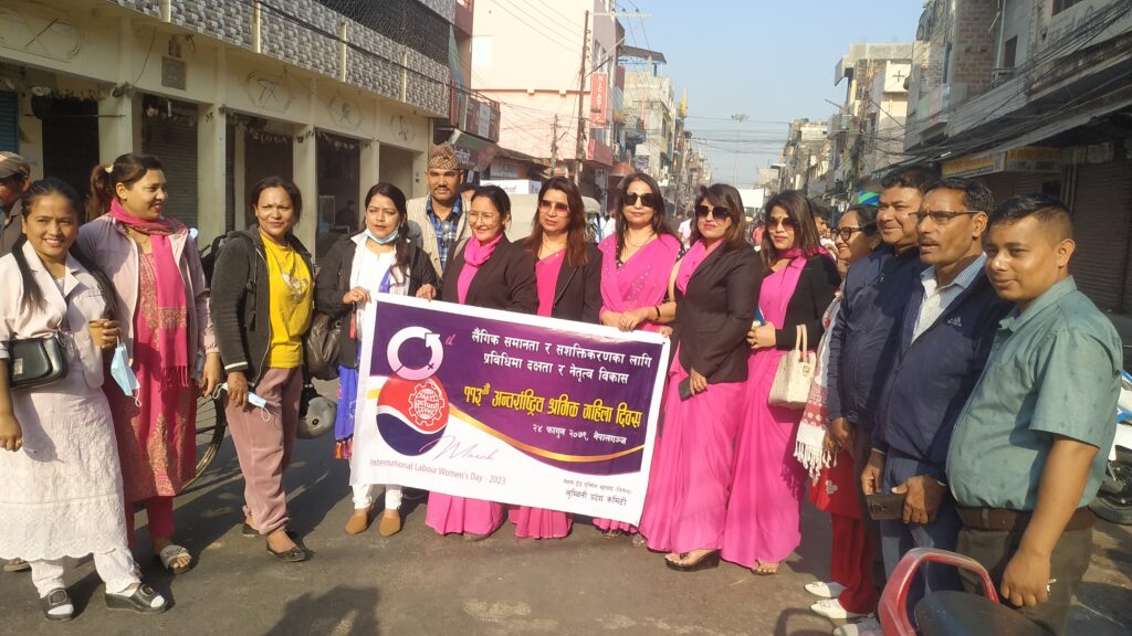 नेपालगन्ज : ११३ औं अन्तर्राष्ट्रिय श्रमिक महिला दिवसमा नेपाल ट्रेड युनियन महासंघ जिफन्ट लुम्बिनी प्रदेश कमिटीको आयोजनामा जिफन्ट बाँकेले आज बिहानै दैनिक ज्यालादारी गर्ने श्रमिक महिलाहरुको स्वास्थ्य चेकजाँच गरेको छ ।
