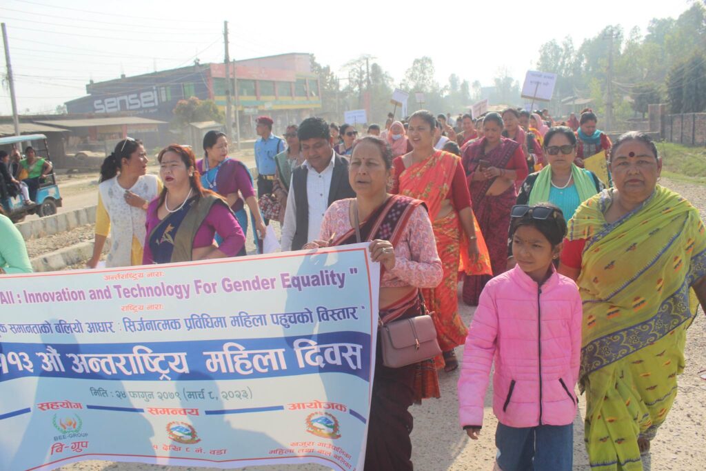 कार्यक्रमलाई सम्बाेधन गर्दै पालिका अध्यक्ष डम्बरबहादुर बि.क तुफानले महिला हिंसाकाे अन्त्य हुनुपर्छ र श्रमिक महिलाले पनि पुरुष सरह ज्याला पाउनु पर्नेमा जोड दिनु भयो ।