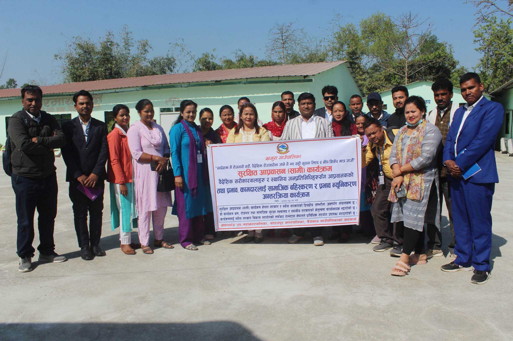 बाँकेकाे खजुरा गाउँ पालिका मा सुरक्षित आप्रवासन (सामी) १(एक) दिने वैदेशिक सराेकारवालाहरु र स्थानीय जनप्रतिनिधिहरु संगकाे कामदारलाई सामाजिक बहिष्कारण र प्रभाव न्यूनीकरण अन्तरक्रिया कार्यक्रम गाउँपालिका राेजगार शाखाकाे आयाेजनामा सम्पन्न भएकाे छ ।