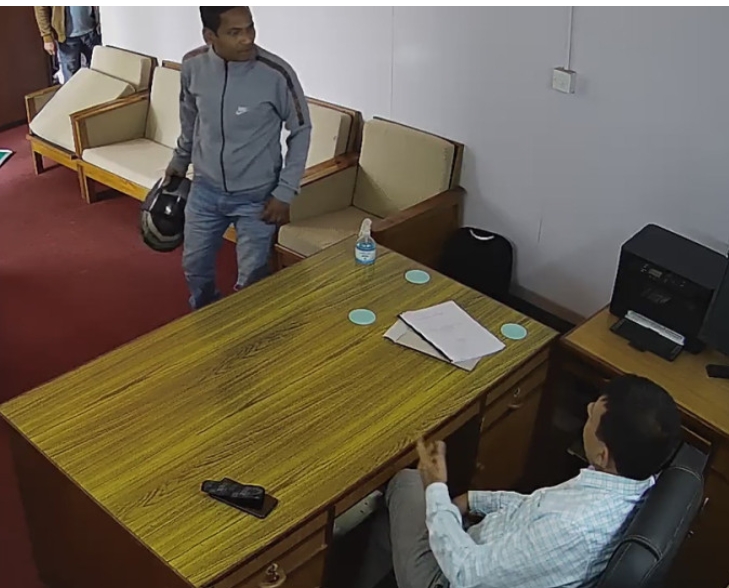 प्राप्त सीसीटिभी फुटेजमा वैशाख १३ गते दिउँसो १२ बजेर ४० मिनेदेखि २ बजेर २० मिनेटसम्म विभागीय प्रमुखको कार्यालयमा विष्टले विवाद गर्दै गालीगलौज र हेल्मेटले आक्रमण गर्न खोजेको देखिएको छ ।