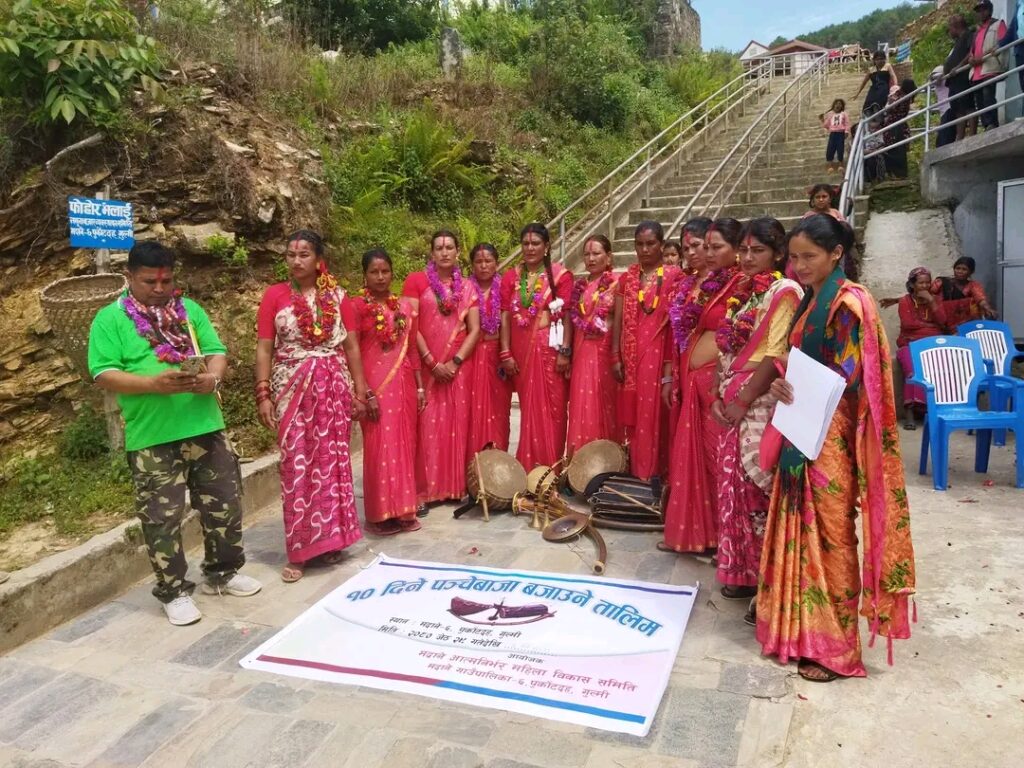 गुल्मी : गुल्मीको मदाने गाउँपालिका वडा नं ६ मा लक्षित महिलाहरुका लागि १० दिने आधारभूत बाजा बजाउने तालिम सम्पन्न भएको छ ।