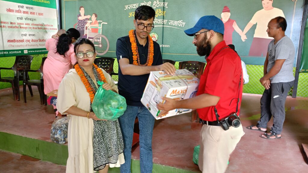 नेपालगन्ज : नेपालगन्ज उपमहानगरपालिका वडा नं १ निवासी गगन पौडेल र उहाँको धर्मपत्नी रुपा पोखरेलले बैबाहिक वर्षगाठको उपलक्ष्यमा नेपालगन्ज उपमहानगरपालिका वडा नं १० मा रहेको मानव सेवा आश्रममा मिक्सर, नगद तथा फलफूल त्यहाँ रहेका बुबाआमा तथा बालबालिकालाई उपलब्ध गराएका छन् ।