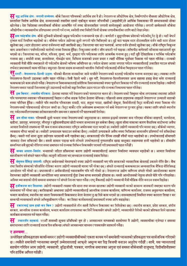 नेपालगञ्ज उद्योग वाणिज्य संघ निर्वाचन २०८० समावेशी प्यानलका प्रतिबद्धताहरु
