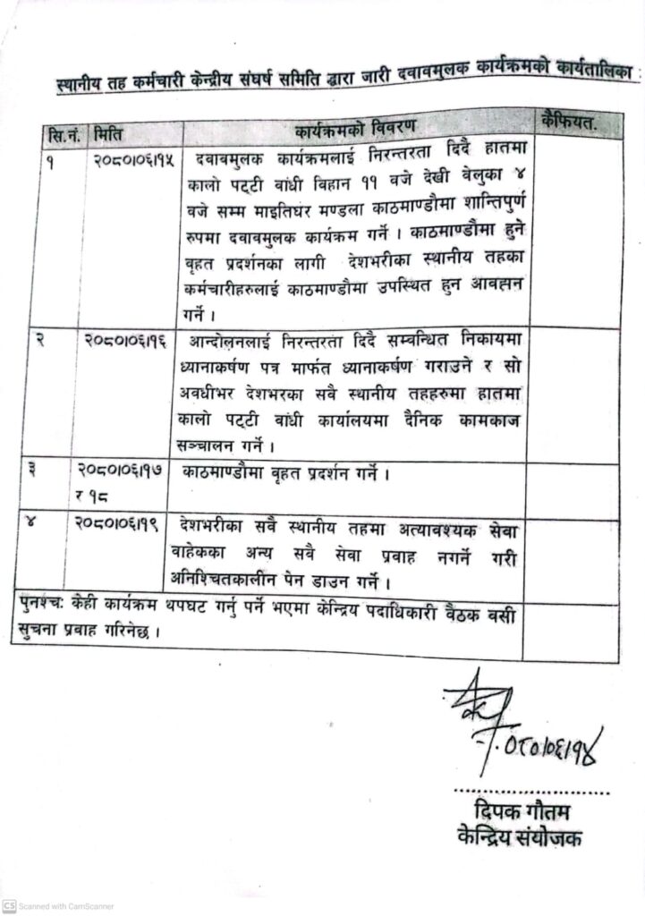 भोलि विहान १० बजे नेपालगन्ज उपमहानगरपालिकामा जम्मा भइ उपमहानगरपालिका लगायतका २३ वटै वडामा पेन डाउन गरि कामकाज नगर्ने कार्यक्रम रहेको रोकायले बताए ।