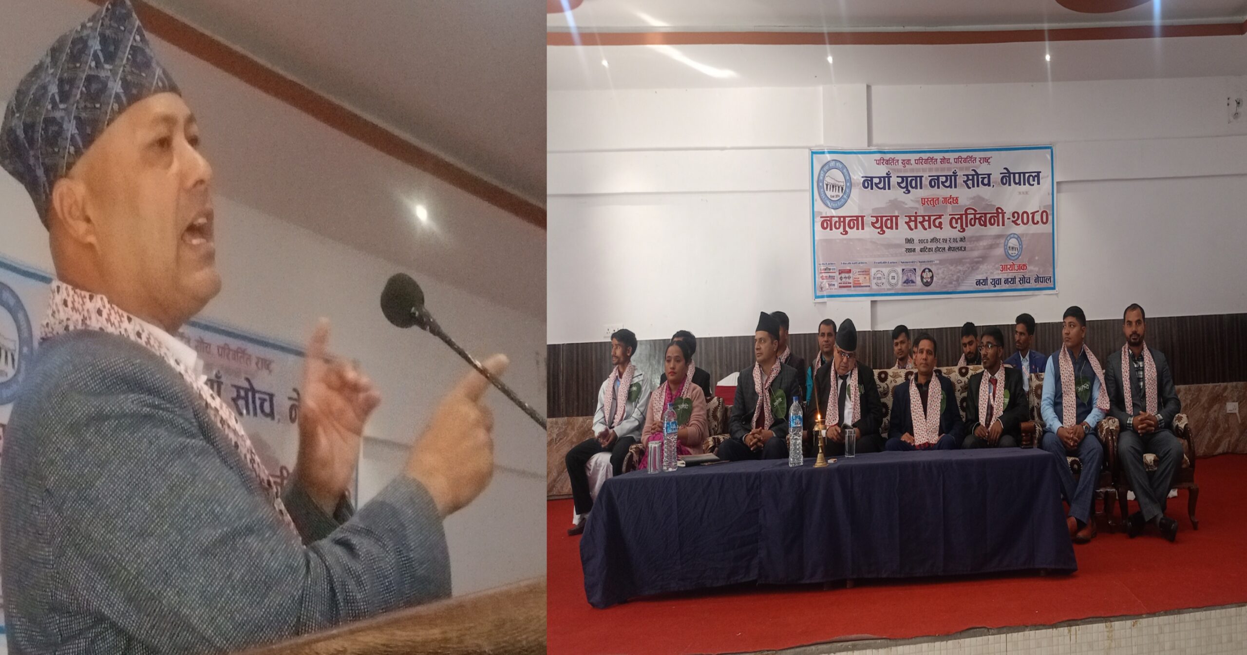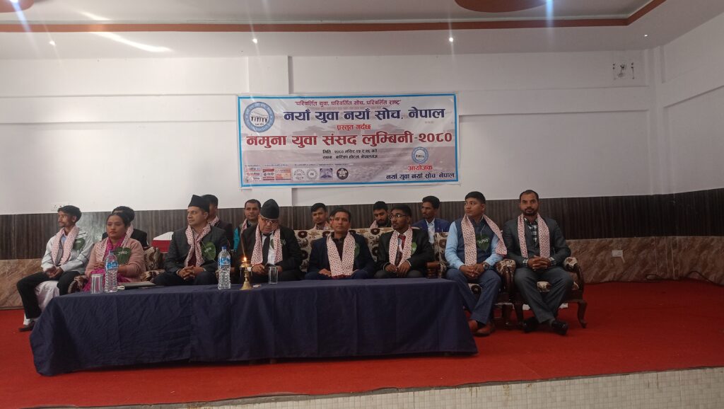 नेपालगन्ज – “नयाँ युवा नयाँ सोच नेपालको” आयोजना तथा नेपालगञ्जका केही संघ संस्थाहरुको आर्थिक सहयोगमा नेपालको संघिय संसदीय अभ्यास बारे प्रशिक्षण दिन एवं सहभागीहरुलाई व्यवस्थापीका एवं कार्यपालिकाको विभिन्न जिम्मेवारी प्रदान गरि व्यवहारिक अनुभव गराउने उद्देश्यका साथ १३ देखी २४ बर्ष उमेर समुहका करिब १२० जना बढी कानुन अध्ययनरत विद्यार्थीहरुको सहभागीतामा नमुना युवा संसद लुम्बिनी २०८० दोस्रो संस्करण नेपालगन्जमा सुरु भएको छ ।
