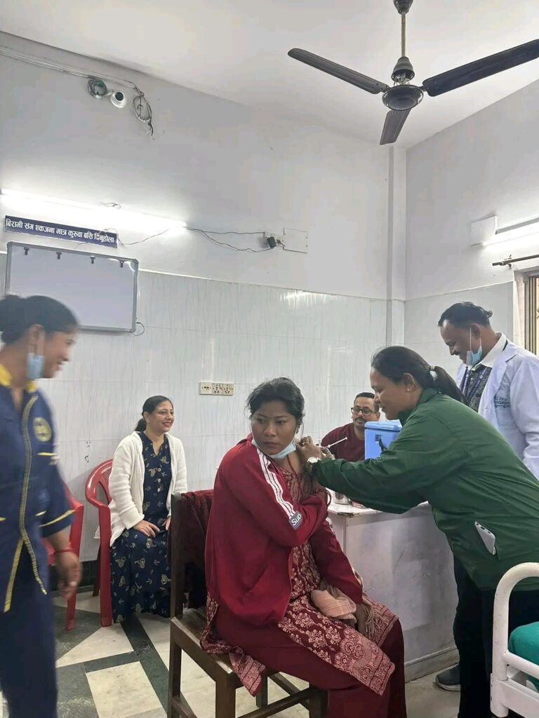 बुधबार ३२ जना सरसफाइ कर्मचारीहरुलाई उक्त खोप लगाइएको र भोलि थप ३५ जनालाई लगाउने गिरीले बताउनुभयो । अस्पतालका प्रवन्ध सञ्चालक डा. सुरेश कुमार कानोडियाले ९ सदस्यीय फोहर व्यवस्थापन टीम गठन गरिदिनु भएको प्रशासन प्रमुख कुमार अधिकारीले बताउनुभयो ।