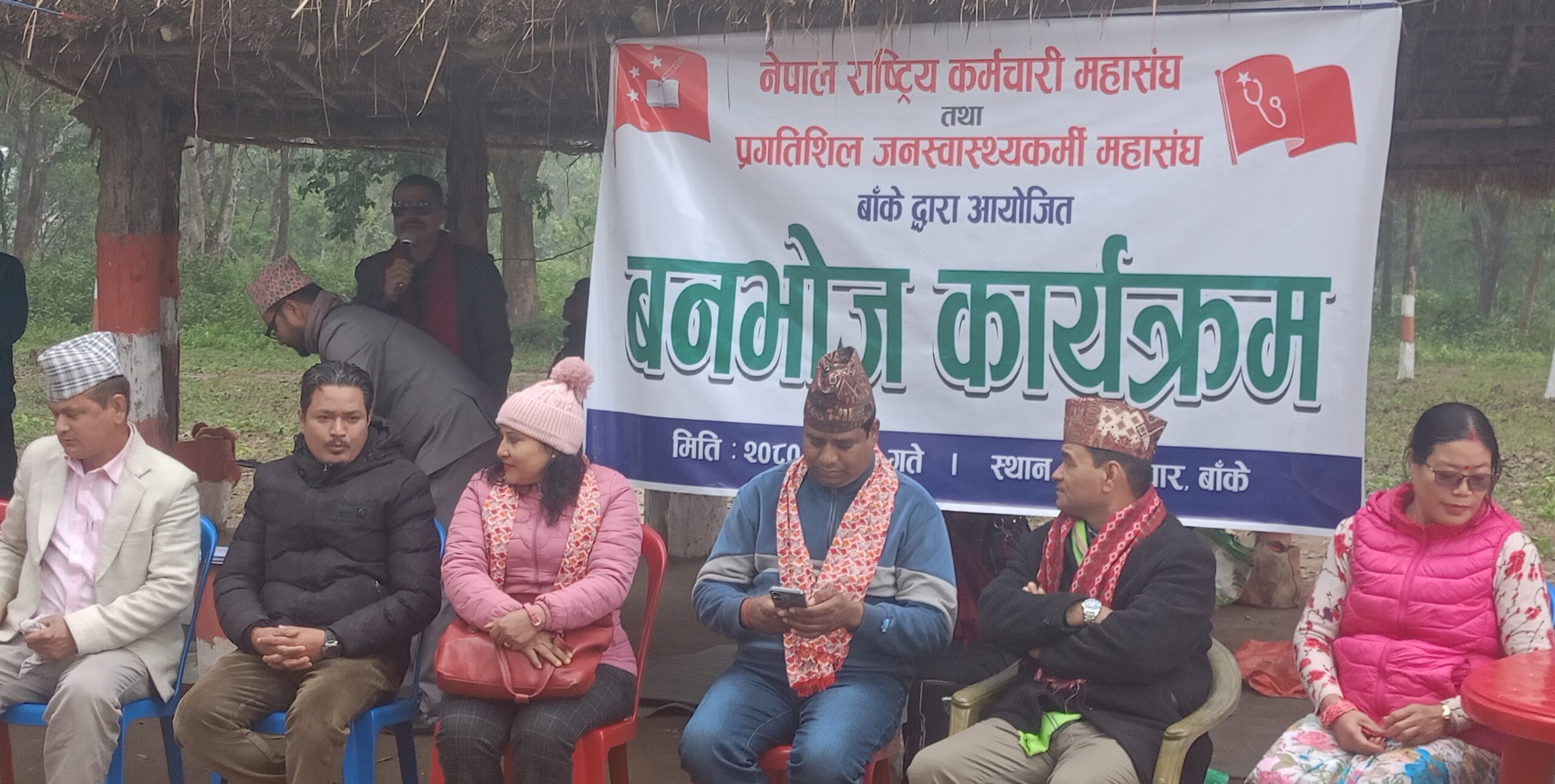 लुम्बिनी प्रदेशका पुर्व मुख्यमन्त्री कुलप्रसाद केसी सोनाम, लुम्बिनी प्रदेश शहरी विकास मन्त्री कृष्णा केसी नमुना, नेकपा माओवादी केन्द्रकि केन्द्रीय सदस्य दामा शर्मा, महिला नेतृ तारा रोकाय, रेनुका खड्का , संगठनका नेताहरु लगायतको उपस्थितिमा उक्त बनभोज कार्यक्रम गरिएको प्रगतिशील जनस्वास्थ्यकर्मी महासंघ बाँकेका अध्यक्ष लंक बहादुर रोकायले बताए ।