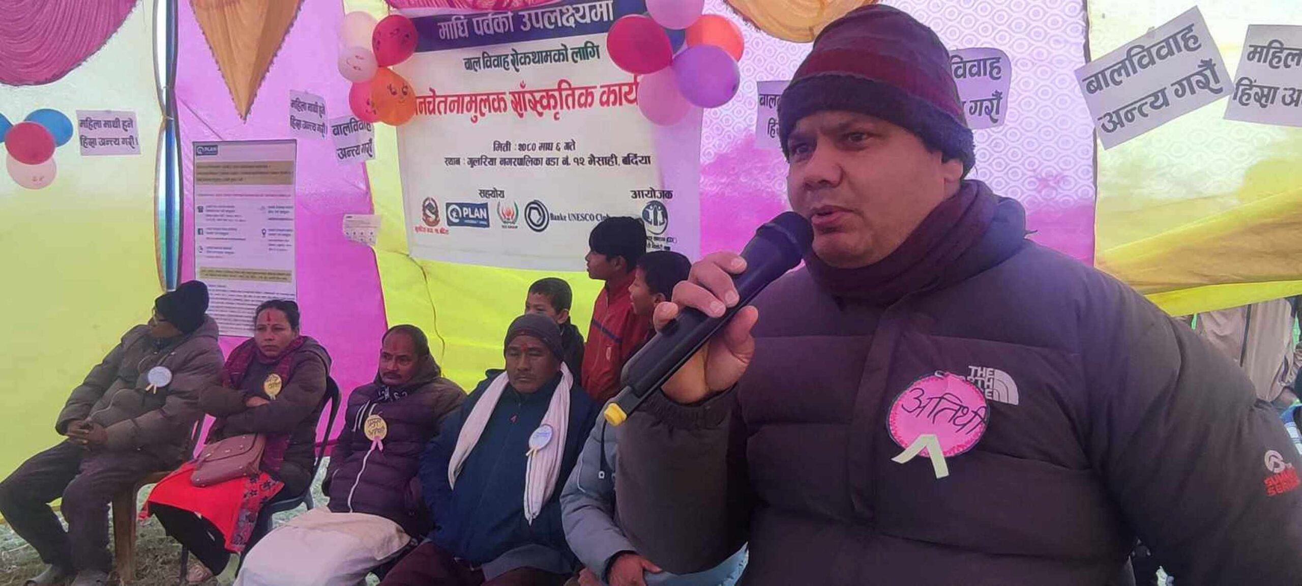 घरदैलो भेटघाट तथा र्याली पछि माघीको अवसरमा भव्य जनचेतना सांस्कृतिक कार्यक्रम आयोजना गरिएको थियो । सो सांस्कृतिक कार्यक्रममा वडा बालअधिकार समितिका सदस्य वडा तथा वडा सदस्य घोशु थारु र भारती बिकले सामाजिक मूल्य मान्यता र परम्परा अनुसार थारु, मधेशी र दलित समुदादयमा बढि बाल बिबाह हुने गरेकाले यसलाई रोक्नका लागि यस्ता खालका सचेतनामुलक कार्यक्रमहरु बढी केन्द्रित गर्नु पर्ने बताउनु भयो ।