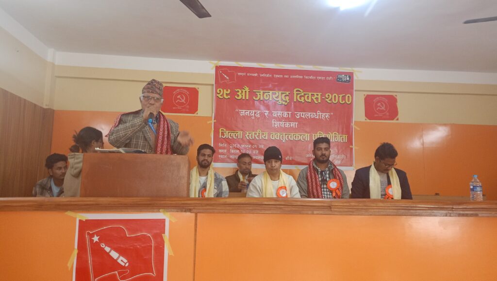 नेपालगन्ज : अनेरास्ववियु (क्रान्तिकारी ) बाँकेलेे २९ औं जनयुद्ध दिवसको पावन अवसरमा जनयुद्ध र यसका उपलब्धिहरु नामक शीर्षकमा गरेको जिल्ला स्तरीय वक्तृत्वकला कार्यक्रम सम्पन्न गरेको छ ।