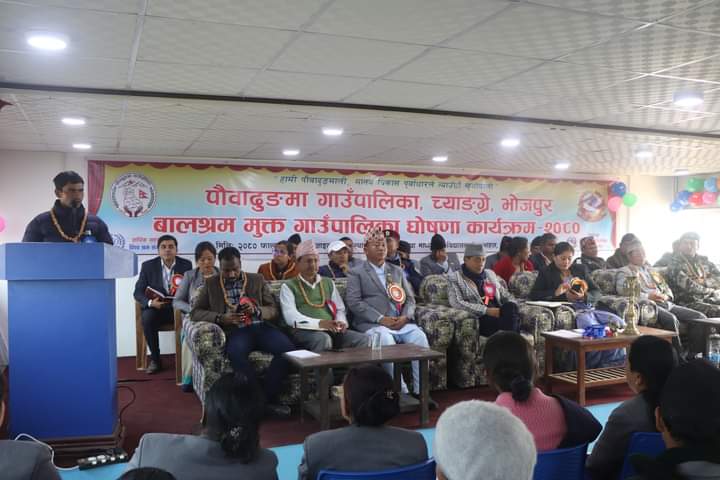 भोजपुर – भोजपुर जिल्लाको पौवादुङमा गाउँपालिका बालश्रम मुक्त पालिका घोषणा भएको छ। आइतबार एक औपचारिक कार्यक्रमका बीच घोषणा कार्यक्रम सम्पन्न भएको छ।