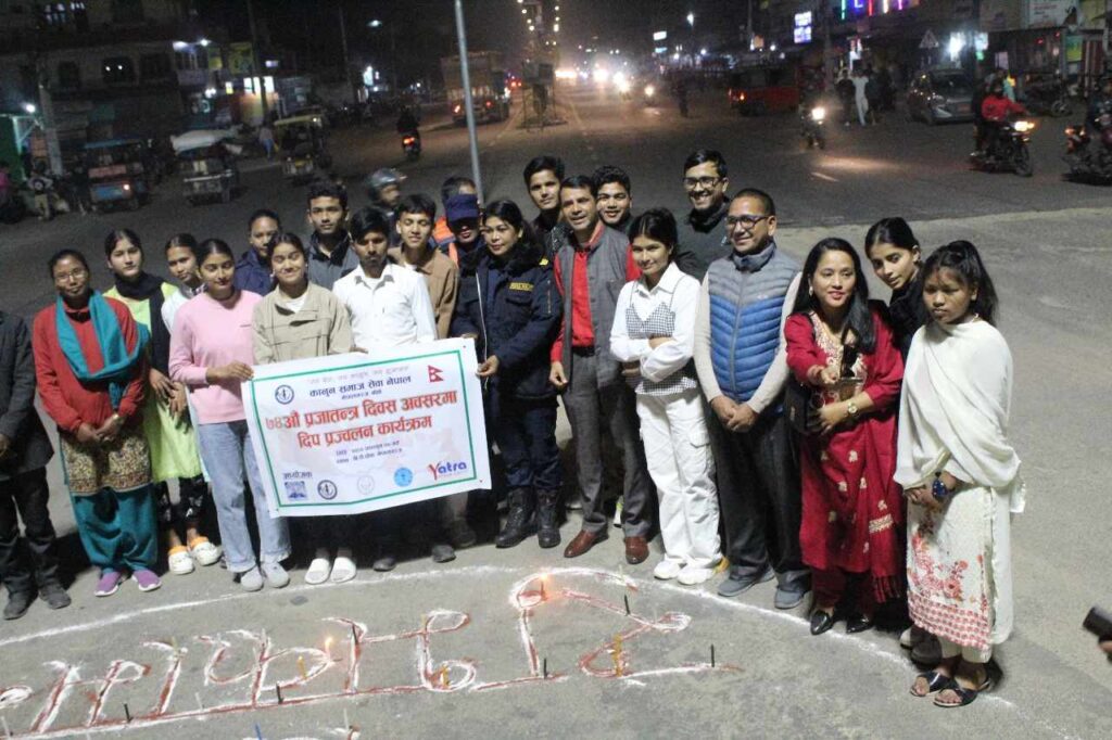 नेपालगन्ज : ७४ औं प्रजातन्त्र दिवसको अवसरमा कानुन समाज सेवा नेपाल बाँकेको आयोजनामा विभिन्न संघ सस्थाहरुको सहयोगमा दीप प्रज्वलन गरिएको छ ।