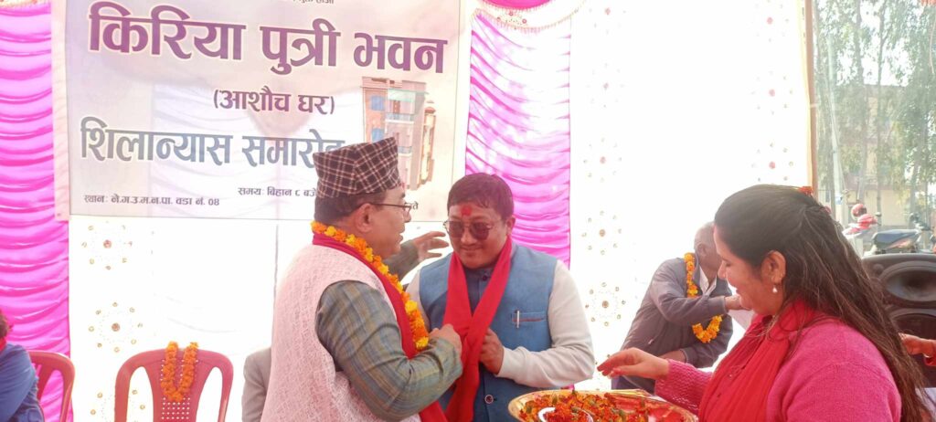नेपालगन्ज उपमहानगरपालिका भित्र किरिया पुत्री घर नभएको हुदाँ डेरा गरि बस्नेहरुका लागि किरिया बस्न समस्या देखिएको थियोे । धेरै संघसंस्थाहरुले पनि कुरा उठाइरहेको बेलामा किरिया पुत्री घर निर्माण समिति गठन गरि आज शिलान्यास गरिएको छ ।