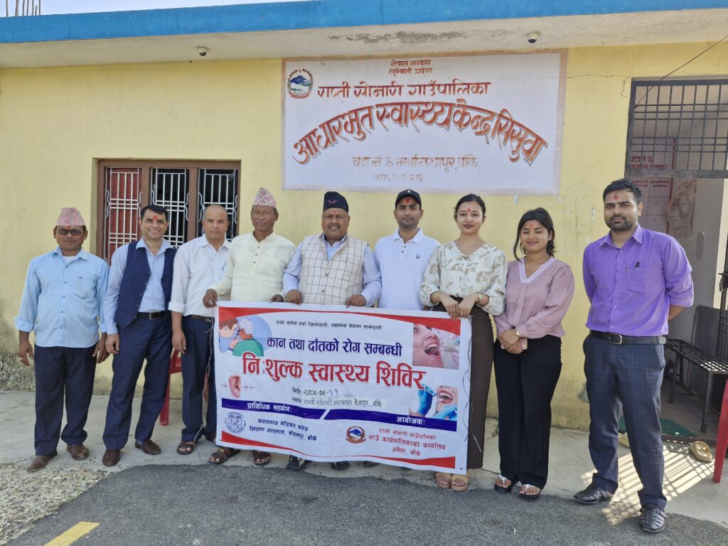 शिक्षण अस्पताल कोहलपुरमा कार्यरत नाक कान घाँटी रोग सम्बन्धि डा. सुधिर सिंह , अमन जयसवाल र दन्त रोग सम्बन्धि डा. रुचि कर्मचार्य, र दन्त सहायक शारदा बुढाले बिरामीहरुको स्वास्थ्य जाँच गर्नुभएको हो ।