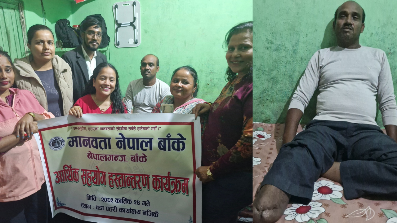 उपचारपछिको समुचित स्वास्थ्य सेवा तथा सामाजिक सुरक्षाको अभावले अपांगता भएका नागरिक अझै उपेक्षा सहन बाध्य छन् भन्ने वास्तविकता यस घटनाले झल्काउँछ। उक्त सहयोग हस्तान्तरण कार्यक्रममा मानवता नेपालका अध्यक्ष सुमन गिरी, उपाध्यक्ष केपी घिमिरे, संस्थापक अध्यक्ष अम्बिका काफ्ले, सचिव कमल बहादुर शाही, सहसचिव खुश्वु श्रीवास्तव, सदस्य तारा कुमारी रोकाय, सदस्य छत्र सुनार, आजीवन सदस्य संगम रावत बैरागी लगायतको उपस्थित रहेको थियो ।