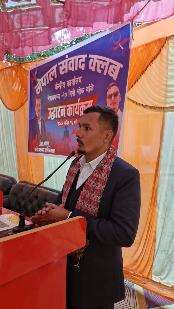 नेपालगन्ज : बाँकेको नेपालगन्जमा फरक किसिमले सामाजिक खबरदारी, अनियमितता सम्बन्धि आवाज उठाउन , , शिक्षा, स्वास्थ्य, राजनीतिक लगायतको क्षेत्रमा भएको विकृतिको भण्डाफोर गर्ने उद्देश्यका साथ ‘नेपाल संवाद क्लब’ को नेपालगञ्ज–१० पासाङ ल्यामु मार्गमा केन्द्रीय कार्यालयको भव्य उद्घाटन सम्पन्न भएको छ। कार्यक्रमका प्रमुख अतिथि रिपोटर्स क्लवका सञ्चालक तथा बरिस्ठ पत्रकार ऋषि धमलाले क्लबको सफल यात्रा र सामाजिक जागरणको भूमिकामा जोड दिदै कार्यालयको उद्घाटन गरेका छन् ।