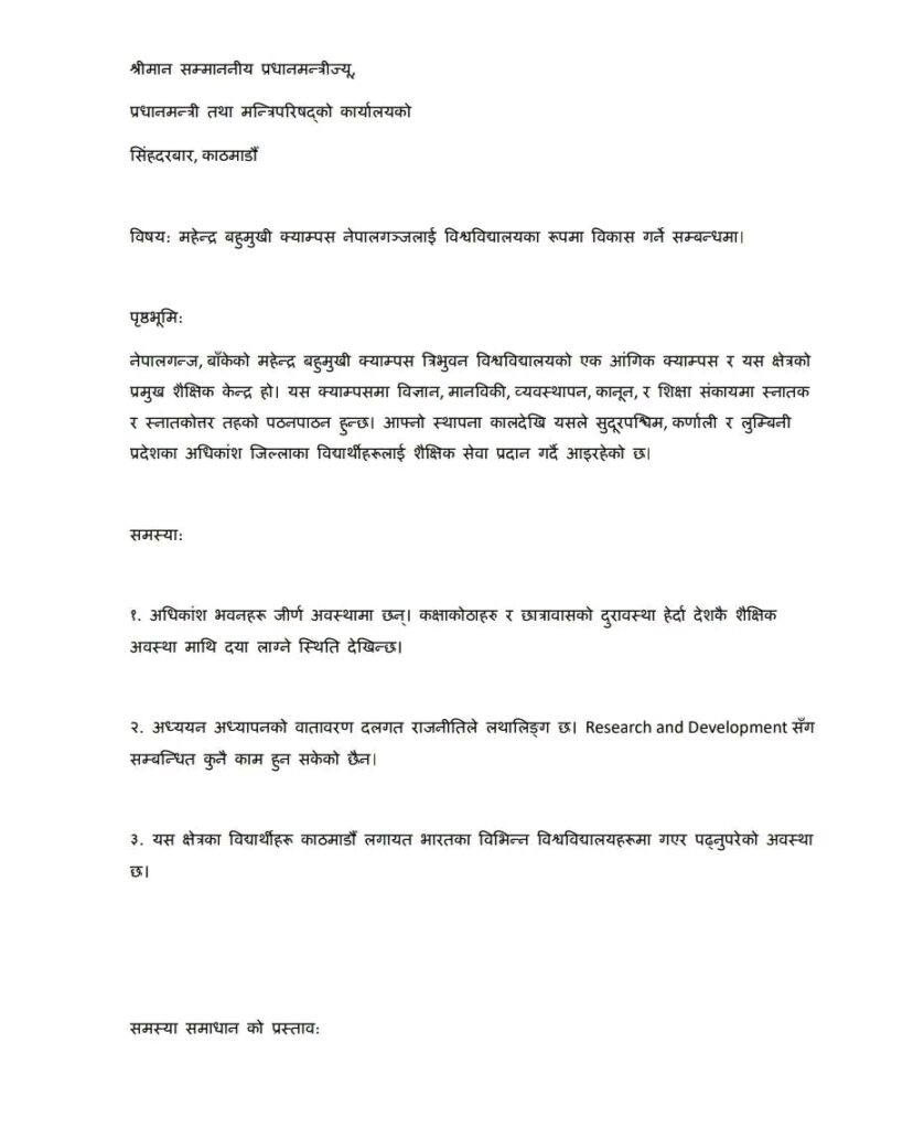 महेन्द्र बहुमुखी क्याम्पस नेपालगञ्जलाई पूर्ण विश्वविद्यालयको रुपमा विकास गर्ने सम्बन्धमा।