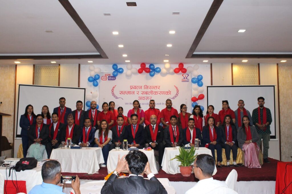 नेपालगन्ज : सन नेपाल लाइफ इन्स्योरेन्स कम्पनी लिमिटेडले आफ्ना अभिकर्ताहरूको क्षमता अभिवृद्धि, उत्प्रेरणा तथा सम्मानका उद्देश्यले “प्रयत्न निरन्तर सम्मान र सबलीकरणको अवसर” विषयक एक दिने विशेष कार्यक्रम बाँकेको कोहलपुरमा रहेको होटल सेन्ट्रल प्लाजामा भव्य रूपमा सम्पन्न गरेको छ। लुम्बिनी प्रदेश अन्तर्गत राप्ती/भेरी क्षेत्र तथा कर्णाली प्रदेशका अभिकर्ताहरूलाई लक्षित गरी आयोजना गरिएको कार्यक्रममा करिब १७० भन्दा बढी बीमा सल्लाहकारहरूको सहभागिता रहेको थियो ।